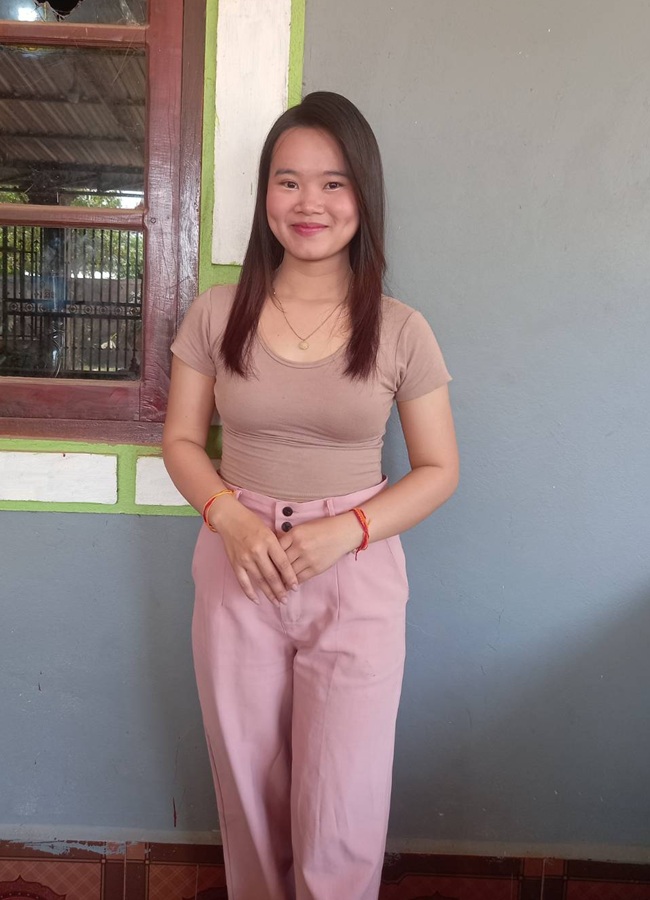 小柄で可愛い女性ですね。今年の6月で卒業になります。若いですが責任感があります。家族想いで、素直で正直との事なので日本人とも合うかと思います。家はヴィエンチャン都のナーサイトング郡になります。
